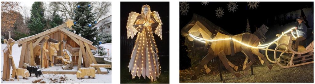 Seine Holzkrippe aus recycelten Brettern bildet erneut einen besonderen Blickfang und wird durch Klassiker wie den Holzschlitten, das Christkindl sowie verschiedene dekorative Holzfiguren ergänzt. Neu ist dieses Jahr als Highlight ein Lichterbogen, den Mathes eigens für den Schlossadvent gestaltet hat. Der Lichterbogen gibt seine Premiere beim Eingang zum Festsaal und schafft einen leuchtenden Empfang und eine hell warme, einladende und vorweihnachtliche Stimmung.