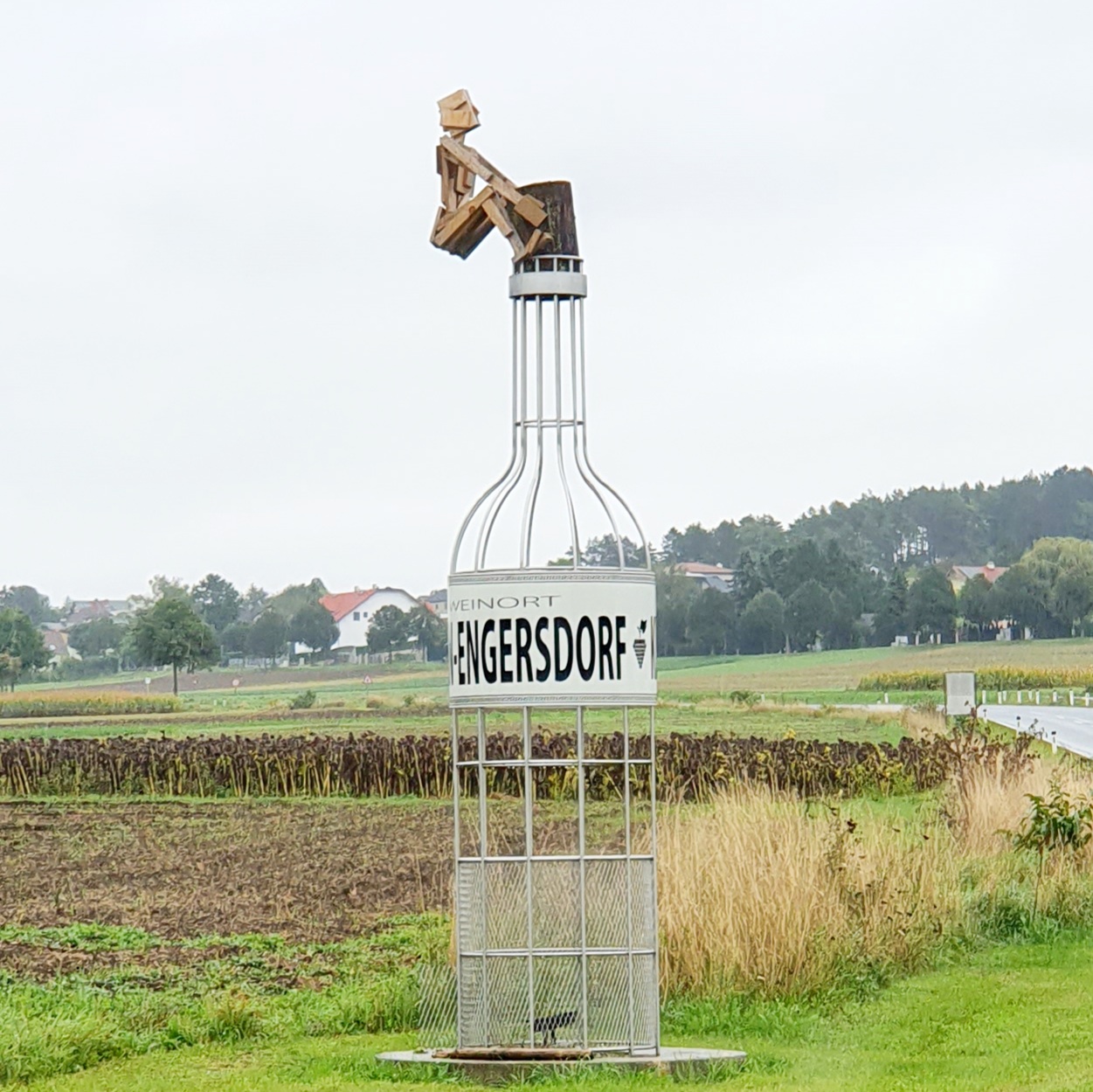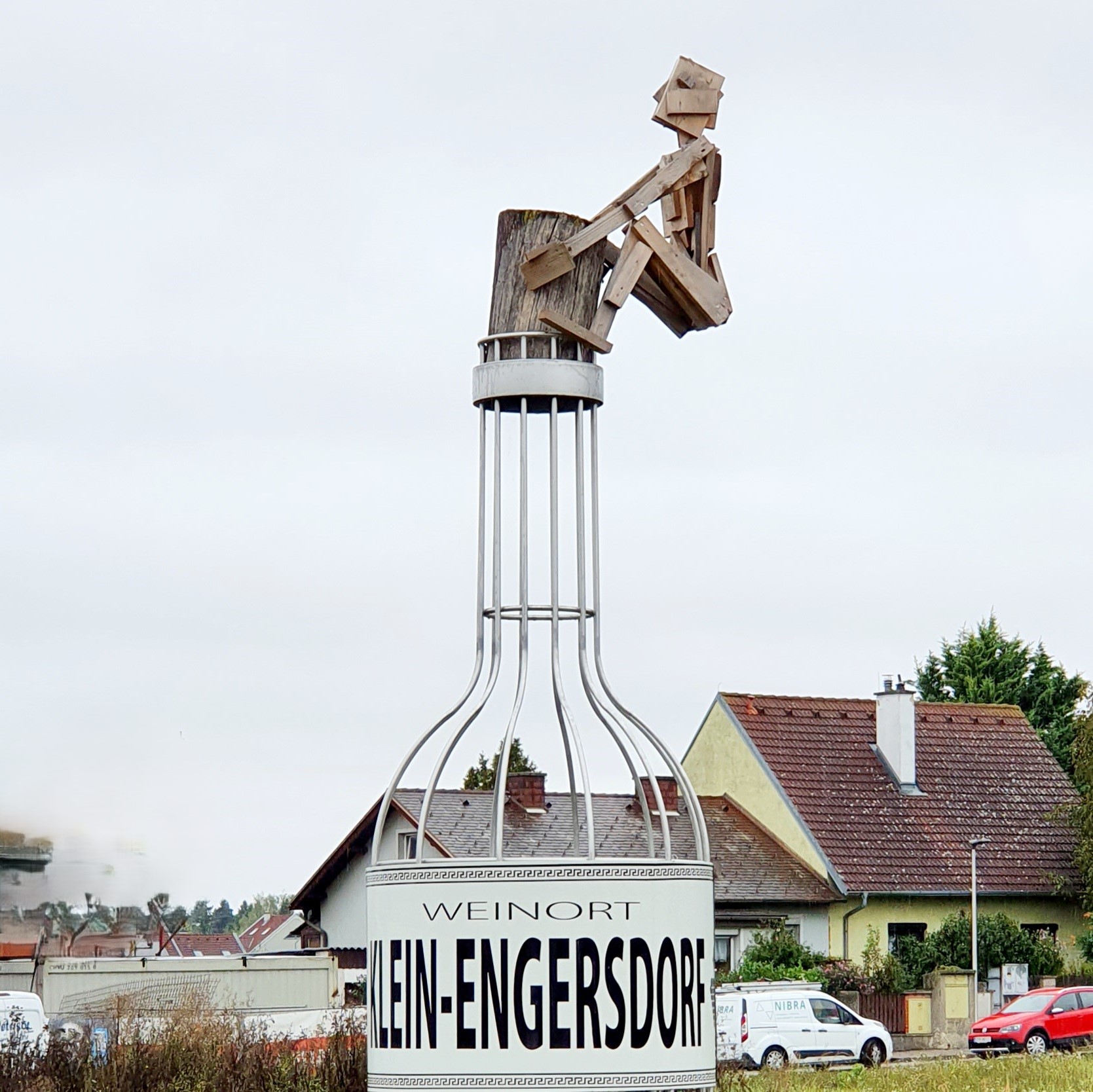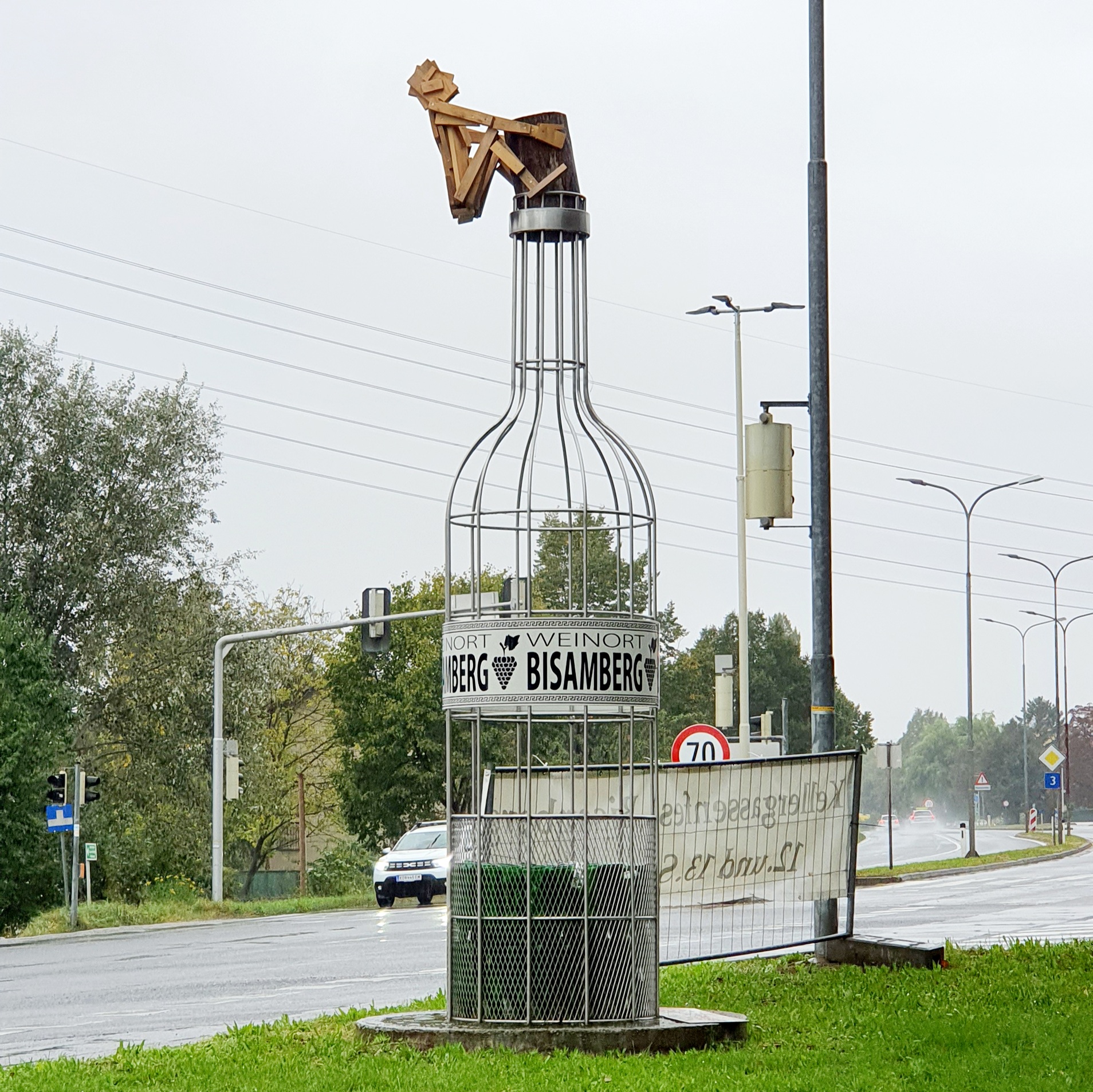 Seit Jahren dacht ich mir: Auf den Ortseinfahrts-Weinflaschen bei mir im Ort, da fehlt was!